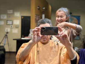 鏡越しにお顔を見ながら色々な話しをしたり、お互いの相談事を話したり